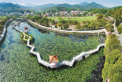 静的,是甘竹山公园景观凉亭、长廊水榭,是大夫山森林公园的峰峦起伏、湖光倒影,是花都湖公园滨水绿道、游憩绿道,是云溪生态公园的翠色欲流、绿草如茵……