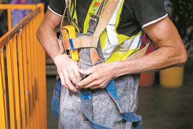 对于通渠人来说,每一次下井清淤,都是一次负重。他们需要穿戴防水服,佩戴头盔及照明头灯、长管式呼吸器面罩,身绑安全绳,携带对讲机和探杆,背上便携式气体监测仪,连接到井外监测设备上,实时监测渠内一氧化碳、氯化氢等气体的浓度,来保证工作环境的安全。一身的装备,很是沉重。