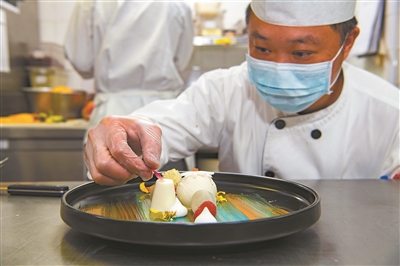 粤菜在美学上一直孜孜以求。一道备受赞誉的“糖醋菊花鱼”是白天鹅宾馆原行政总厨庄伟佳的扛鼎之作。作为世界级烹饪大师、广东十大名厨之一,庄伟佳在学习西方摆盘之后,交出了“糖醋菊花鱼”这道“粤菜美学作品”——用芦笋作菊花茎,青瓜做叶,番茄汁与茄汁等化作“泥土”,以鲩鱼或者石斑鱼作怒放的菊花。当时的加拿大宾客看到这道“糖醋菊花鱼”,惊喜不已,不忍下箸享用。