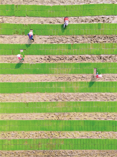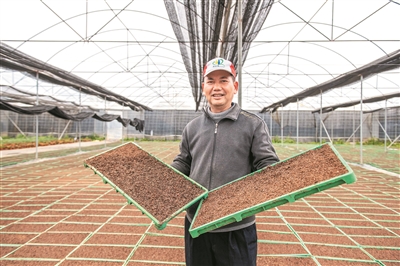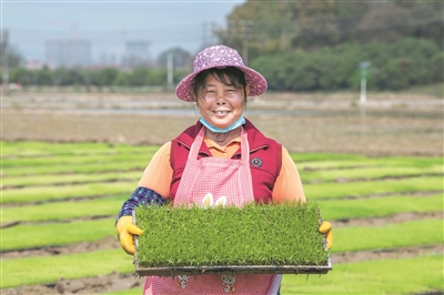 从化农人手捧起一盘绿油油的秧苗