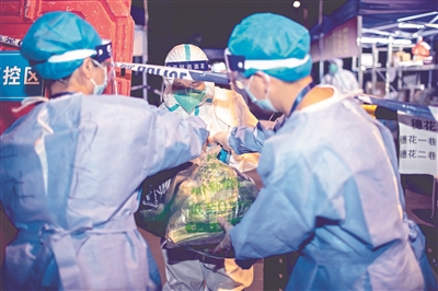 同样如此昼夜奋战的还有海珠区穗花北社区管控区的工作人员。昌岗街社工黄俊婷和她的同事接连数日在穗花北社区管控区的出入口值勤。他们把外卖快递转运到管控区的物资自取区,等候管控区居民自行提取。如有行动不便的居民,身穿防护服的工作人员则会提供送货上门的服务,保证管控区内居民的生活物资补给。“我们专门建立了管控区居民的微信群,有困难时可以在群内求助,我们都会尽力想办法解决。”黄俊婷说,有一位居民在微信群里反映家里的冠心病药吃完了,很是着急,社工了解清楚药物的具体名字后,马上去附近药店购买,最终顺利地把药送到居民手中,解决了他的燃眉之急。