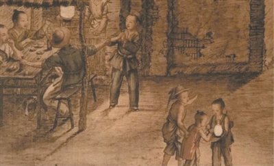 清代画家郎世宁绘制的《羊城夜市图》(局部)