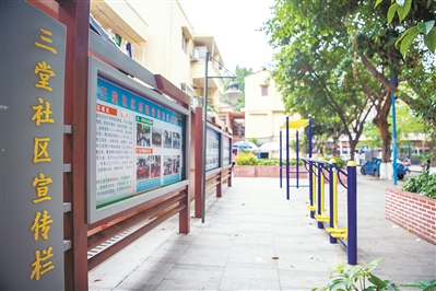 记者在现场看到,口袋公园的花圃里、石阶上摆放着各式绿植与鲜花,金鸡菊、一品红、波斯菊、四季海棠等,墙上还挂着绿萝等蔓藤植物。这处口袋公园名为三堂社区小公园。它面积虽然只有400平方米,但公园里有休闲坐凳、康体设施、宣传栏,各项设施齐全。