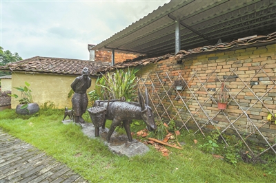 随着时代变迁,交通越来越发达,如今,古渡已不再承担货运的功能。采访当日是个无风的阴天,水面静悄悄的,昔日繁华已不复见。不过,从古街到渡口,一路上的雕塑记载着这段历史。谢鉴洲指着路边一组农户运荔枝的雕塑说:“以前农民就是从树上新鲜摘下荔枝,装满两箩筐,让牛或者驴驮着;也有的是人工挑着,将荔枝从林子送到渡口,再由停泊在渡口的帆船运送出去。”