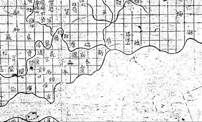 现存最古老的石刻地图《禹迹图》(局部),刻于1136年,作者不详。以今人眼光来看,这很像是一幅寻宝图。图上,梅、潮、循、新、端、英、绍等地区尽然涌现,甚至罗浮山也赫然在目,而广东两字尚未出现,广州更只是以“廣”记之。