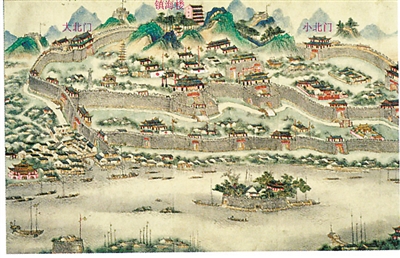 屈大均在《广东新语》中把越秀山上的镇海楼与禁钟楼(岭南第一楼)、海山楼和拱北楼合称为广州城“四大崇楼”。镇海楼被誉为“岭南第一胜概”,也是当时广州城区的制高点。咸丰六年(1856),英法侵略军兵临广州城下,清廷在镇海楼筹议战事,镇海楼一度有“筹边楼”之称。现镇海楼旁还保存一段明城墙。