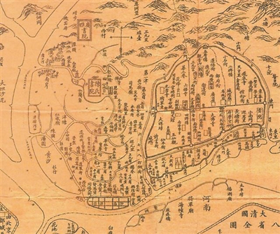 明清时期是广州城的又一次大扩展。明洪武十三年(1380)永嘉侯朱亮祖将宋广州三城合而为一,并向北扩到越秀山。清代广州城东到东濠涌、西到西门口、南到今万福路和一德路、北到越秀山。