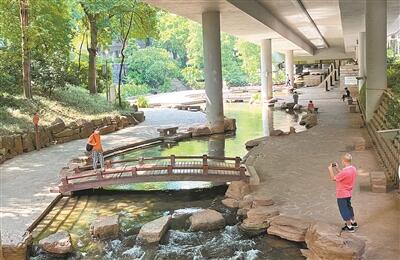 “河水清了、空气好了,清水绿岸还给了百姓,我们生活在附近的居民真的非常开心。”回顾着东濠涌近10年的点滴变化,街坊李伯说出了东濠涌附近街坊们的心声。东濠涌,这条广州曾经的城东护城河,仿佛一条绿脉,在老城心脏地带跳动出勃勃生机。落日时分,可以站在东濠涌边看水面波光粼粼,树枝摇曳;日出光景,能欣赏偶尔掠过河面的飞鸟和水中自在游弋的鱼儿;带状公园、叠水瀑布、亲水平台……旖旎的风光,让老街坊家门口多了休憩、游玩的好去处。