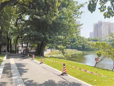 据悉,荔湾湖环湖碧道改造从泮塘村外接环小翠湖至仁威庙入口,面积约3649.82平方米,改造包括拆除围墙、入口空间整理、新增碧道、新增活动平台、绿化整理、增加海绵设施等,使公园更好实现生态、文化、景观、休憩及海绵城市功能。