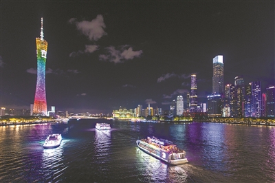 色彩绚丽的游船成为珠江上的靓丽风景线