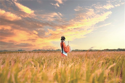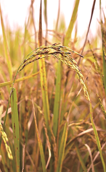 成熟后颗粒饱满的水稻成为金灿灿的风景