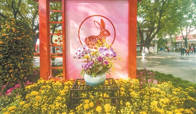 今年迎春花会以“玉兔笑迎锦绣春”为主题,从除夕持续到元宵。日前,记者走访看到,迎春花会布置基本就绪,将展出各类应节花卉逾3万盆,其中新颖精品花卉4500多盆。花会各景组中巧妙融入“玉兔”这一文化元素,运用园林布置手法营造出岭南特色的园林景组。重点在公园正门中轴线到中心广场区域以及各入口,布置14座主题景组。