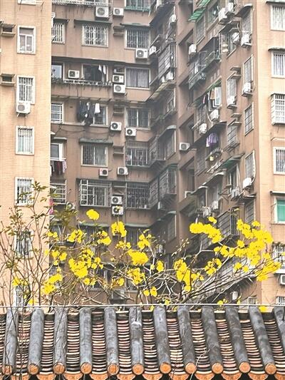近日在紫花风铃木全城刷屏之时,记者在荔湾区荔枝湾景区附近留意到,个别黄花风铃木也耐不住寂寞,在乍暖还寒的春意中悄悄绽放。花团霸气,颜色鲜艳,可以说风铃木的存在,满足了人们对这个季节最美好的向往和追求,也让广州街坊增加了对这种植物的认识。
