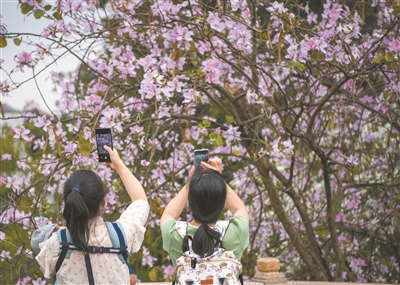 对于古人而言,赏春看花最好是在园林,而中国古典园林布局最大特征,便是以模拟自然为最高宗旨,明朝计成所著的《园冶》一书对园林有“虽由人作,宛自天开”的描述,背后反映的其实是人与自然共生的追求和理念。而好的园林往往需要花大精力装点,难以走进寻常百姓家。不过,广州北有山、南有海、珠江穿城而过,水系完备、山系连绵,拥有山水林田海得天独厚的生态资源。如今,这座城市也在不断塑造一座园林城市的模样,并传递着广州人的审美和价值理念。花城之所以为花城,在于满城街巷,皆以花树为经纬,一行行一列列,融入生活。无论是艳丽的宫粉紫荆、淡雅的白玉兰,还是灿烂的杜鹃、火红的木棉花,它们开得热烈,美得惊艳,把花城广州装扮得美不胜收。而花城各个赏花点,自是数不尽的赏花、爱花之人。