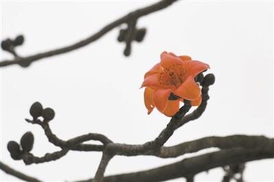 木棉广泛分布于我国南方热带、亚热带省份。喜光,不耐寒,若冬季温度低于5℃就可能出现冻害。其粗生快长,在日光充足的地方生命力强,最高可达约25米,树姿巍峨,呈现出一种顶天立地的姿态。每年三四月是花开季节,满树橙红。即使凋落,落地时坚实的花托也让花保持着盛放的姿态,颇有阳刚之气。尽管木棉在其它城市比较少见,但在广州却得到广泛种植,并且可以追溯到更早的时候。