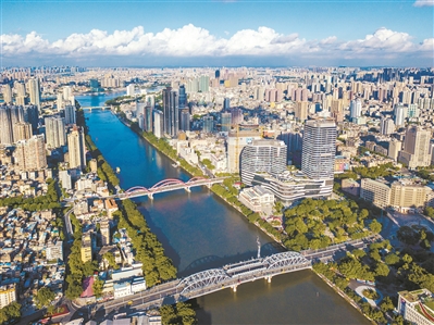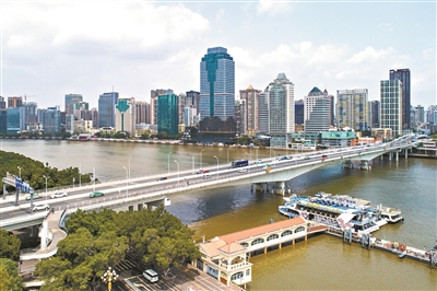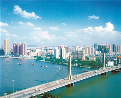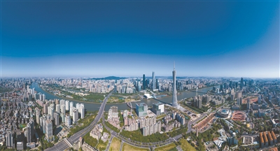 蓝天白云下,一座座跨江大桥将珠江两岸连为一体