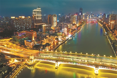 在漫长岁月中,一座座跨江大桥与珠江融成一体。2009年,珠江两岸(白鹅潭至琶洲大桥段)进行了景观照明的统一规划和建设,此后又不断提升。每当华灯初上,从人民桥到琶洲大桥,珠江已经形成一条灯光廊道,成为广州夜晚最美的景观。每一座桥上,都流连着沉醉于灯光的人们;而桥下,每每游船经过,总有人喊“桥上的朋友你们好”。