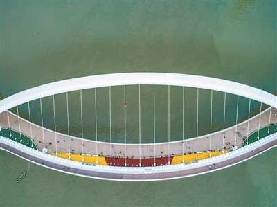 更多的广州人也在用行动表达对海心桥的喜爱。桥上桥下,时常人流涌动。海心桥以一条弧线串联起沿线的重要设施、景点,描绘出一幅“珠江上河图”,可谓“你在桥上看风景,看风景的人在桥下看你”。