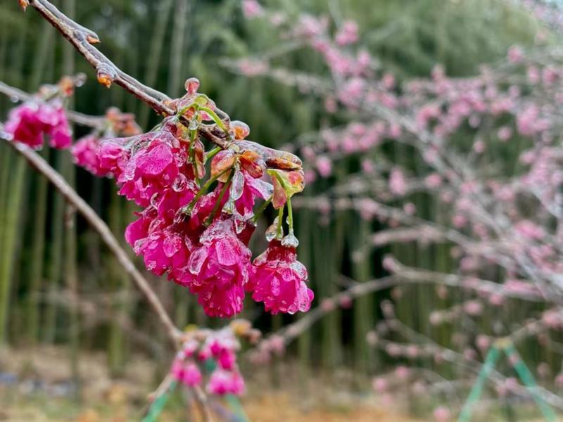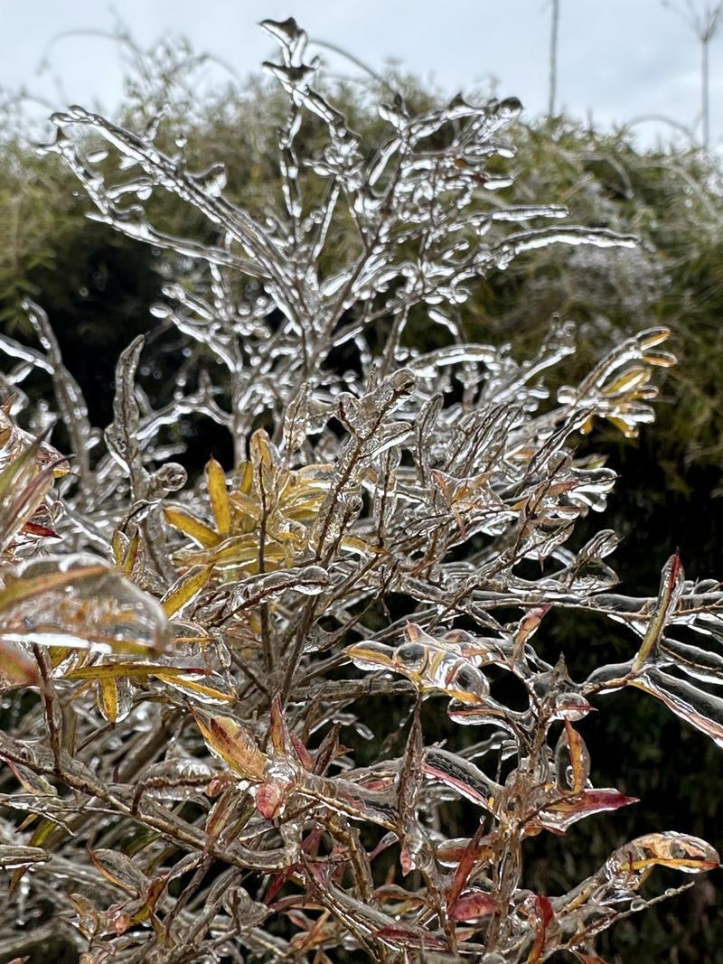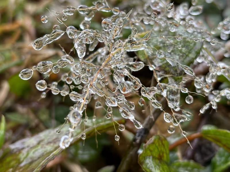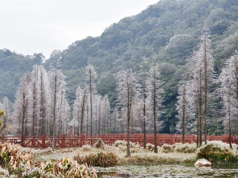 1月23日清晨,受冷空气影响,广州石门国家森林公园迎来了今年的首场雨夹雪,公园内的花草树木都披上了一层银装,为游客带来了一场视觉盛宴。