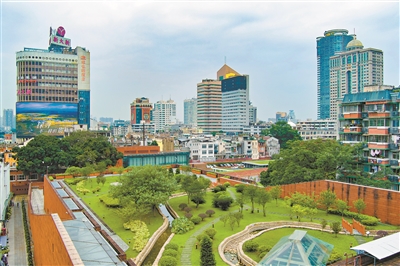 无限极广场由两座8层高的塔楼组成,两条连廊和天台绿径连接塔楼,形成独特的建筑造型。