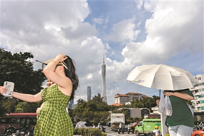 6月21日,广州客村,市民在烈日下出行。