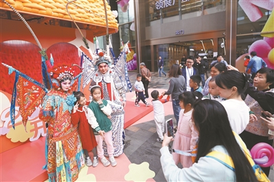 粤剧嘉年华快闪活动中,观众和演员合影。