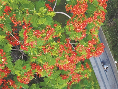 五月的广州是凤凰花的天下。据不完全统计, 全市共有凤凰木2.5万余株,比较集中之处在白云大道、广州大道南等地。