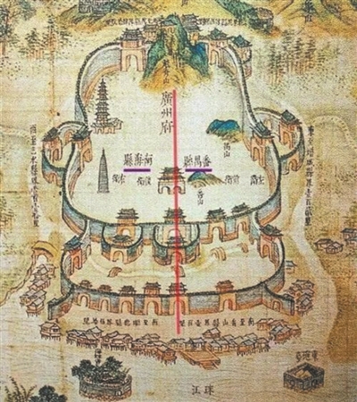 清代广州城区示意图,城墙外就是珠江