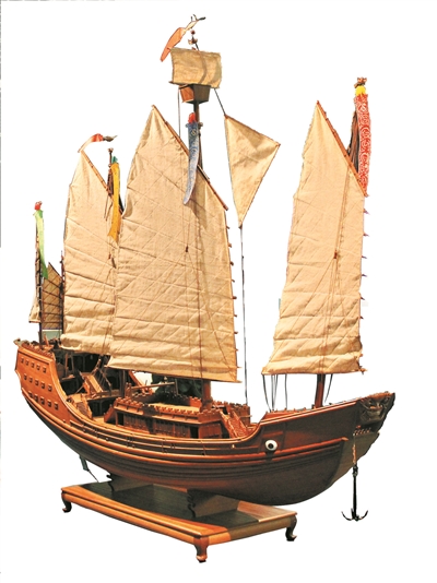中国古代帆船模型。千年前,许许多多这样的帆船从珠江口出发,直抵波斯湾
