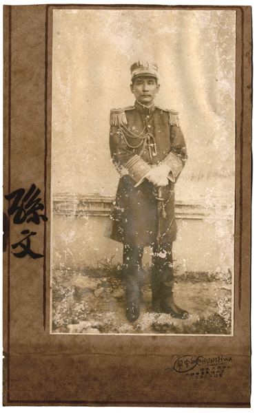 孙中山着大元帅服留影。这张照片也成为后来各种纪念雕像、纪念展览中孙中山形象的蓝本。