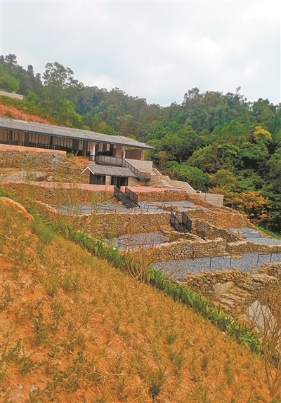 日前,记者在莲花书院遗址现场看到,莲花书院依山势而建,坐西北向东南。建筑基址分布于两条小溪交汇处的五级平台上,呈中轴对称结构。