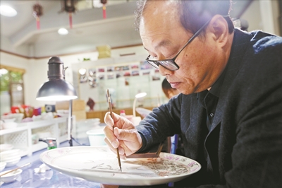 赵艺明大师在绘制广彩。