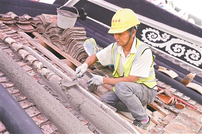 中国古建筑通常以木结构为主,耐久性差,修缮频率较高。在欧阳仑看来,相对其他“八大作”工种而言,瓦匠是实实在在的基础工种,工作环境受天气影响大,比较辛苦,很难吸引青年人才加入,更难走上古建修缮的专业化道路。