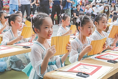 在“三月三·上巳在西关”活动中,学童诵读《新三字经》