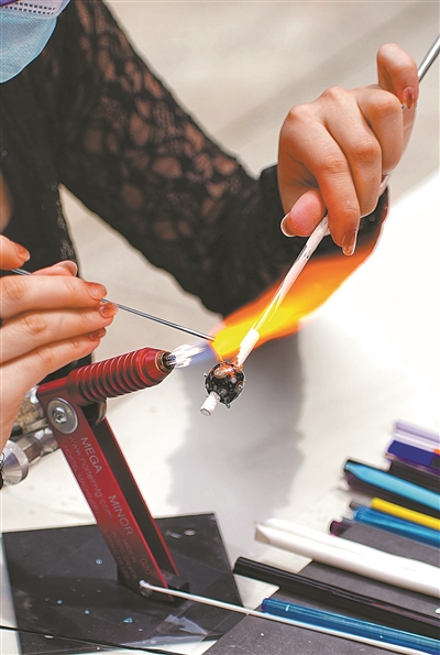 学院老师现场演示广州汉代蜻蜓眼玻璃珠的烧制技艺