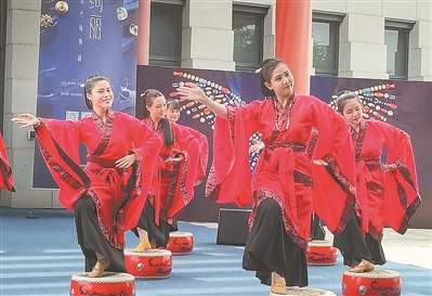 志愿者们穿戴着广州出土汉代珠饰复刻品演出