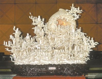 2010年上海世博会“广东周”,中国工艺美术大师李定宁的作品《盛世乾坤》——以多达57层的牙球,直径只有17厘米,再度展示了广州牙雕技艺的登峰造极。“要让一个20层的牙球‘活’起来,至少得花费一年时间,每一步都是精工细作。”李定宁对记者这样说。