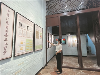 1943年,被誉为“工人将军”的梁广挂名药行经理在此二楼居住从事地下工作,建立起中共广东省临时委员会秘密活动机关,开展革命活动,在广州沦陷期间为党组织的活动起到了掩护作用。工作人员介绍,修缮中最大限度保留了这幢民国建筑原有布局和面貌,使青砖墙、花阶砖、木屏风、木制楼梯、三重大门、水泥花瓶栏杆等标志性元素“焕发新生”,并通过史料翔实的展览,重现中共广东省临时委员会活动旧址的光辉历程。