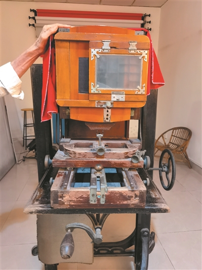 与照相馆一样上了年纪的还有店内的镇店之宝——木制座楼机。“这部座楼机的年纪比我还大,是我父亲在广州买的,到现在也没坏,只是派不上用场了。”摩挲着曾经的“老伙伴”,黎焯勋兴致勃勃地跟记者一一细说使用方法——