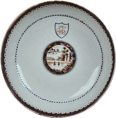 广彩青花描金徽章风景纹碟(清嘉庆)