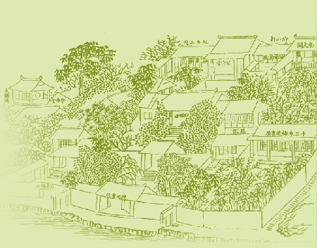 1872年前后,学海堂、菊坡精舍、应元书院全图 图片来源:《粤秀文脉》