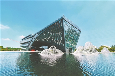 广州海事博物馆主楼宛如一艘大船漂浮在水中央
