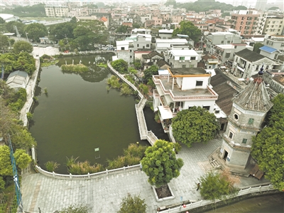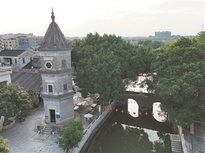 日前,记者来到位于番禺区石楼镇西北面的大岭村寻访。穿过一栋栋现代厂房,宽阔的沥青路已铺至村口。不过,当记者步入村街,沿着清澈的玉带河信步前行,景观就为之一变,一幅小桥流水之画卷在眼前徐徐展开,晚霞灿灿,历经沧桑的古塔古桥诉说着大岭村的悠久历史。