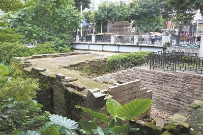 周末,记者从地铁西门口站走到中山六路与人民路相交处西南侧,一抬眼,一片葱茏掩映处,便是西门口瓮城遗址。美人蕉、木瓜树、木棉树、铁树等点缀其间,如果不是拐角处一块黑色石碑上写着的“西城门瓮城遗址”字样提醒人们,它有着一段不平凡的过去,或会有人以为那只是一个不对外开放的公园。