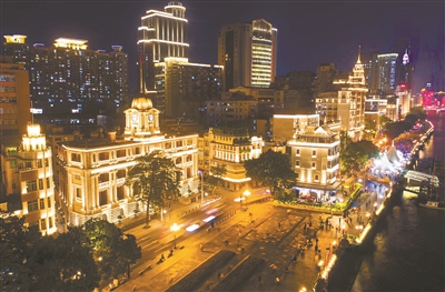 珠江游船融入璀璨江景