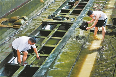 龙船“起来”后,还要清淤泥,检查船身