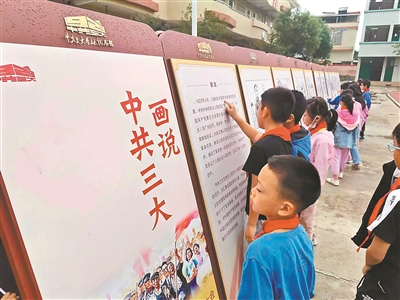 学生正在观看中共三大“三大百年”百场巡展