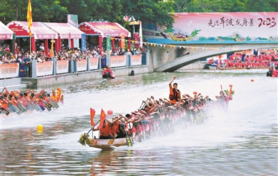车陂涌上龙舟竞渡,锣鼓喧天,热闹非凡