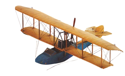 在“航空救国”思想的影响下,不少广府华侨回国效力,图为“谭根”船身式水上飞机模型。