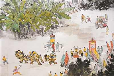 《西关印记》长卷展现的舞狮习俗